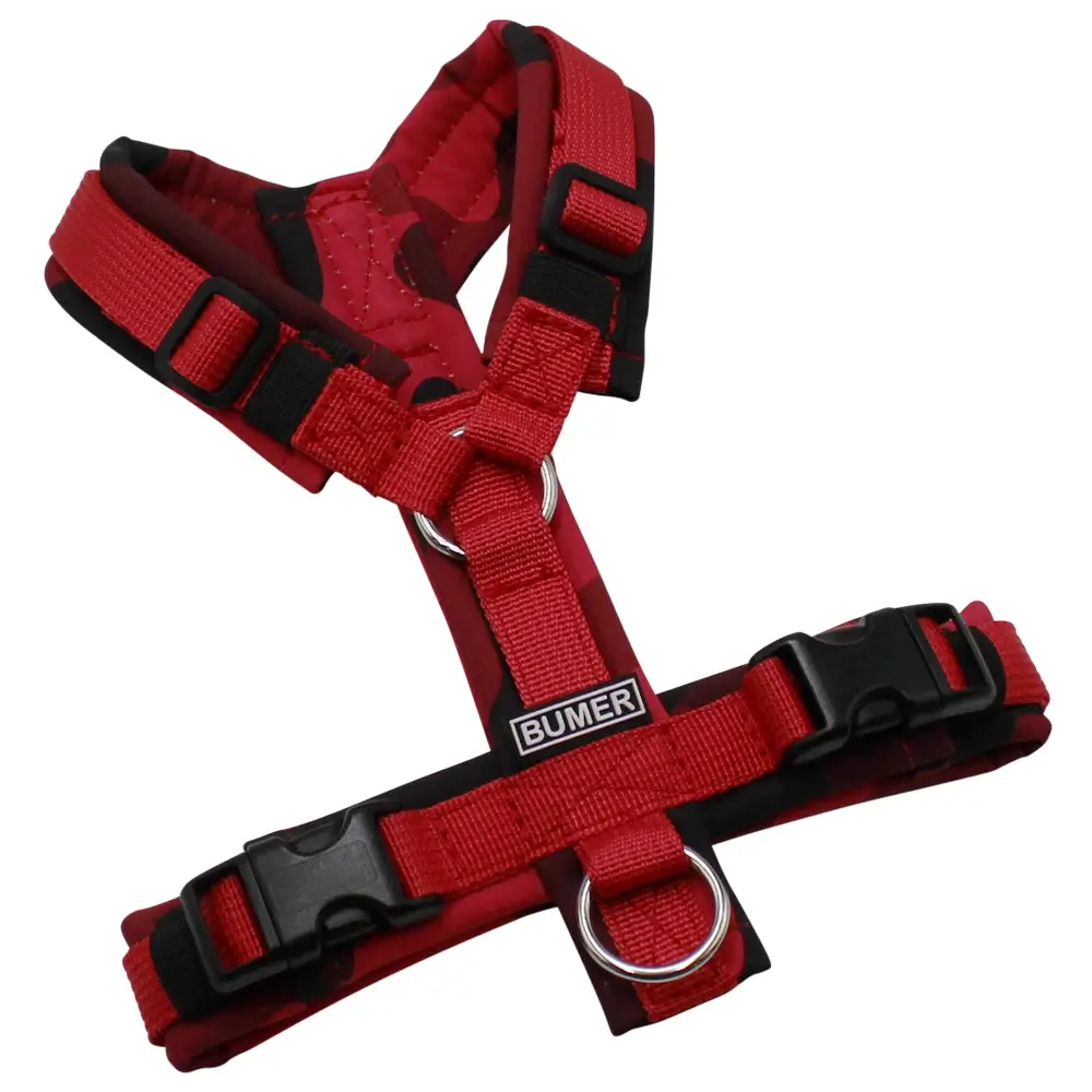 BUMER Hundegeschirr, gepolstert ohne geteilten Bruststeg, Größe XXS, Gurtband: PREMIUM Flammenrot, Softshell: UNDERCOVER TO CHRISTMAS, Ringe: silberfarbig (Edelstahl), Schnallen: schwarz
