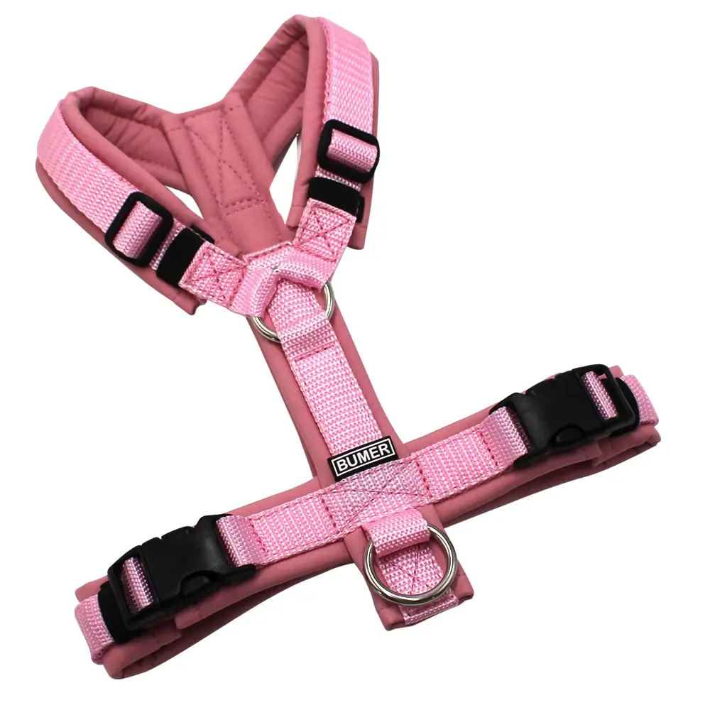 BUMER Hundegeschirr, gepolstert ohne geteilten Bruststeg, Zwischengröße XS/S, Gurtband: PREMIUM X Rosenzart, Softshell: Rosenquarz, Ringe: silberfarbig (Edelstahl), Schnallen: schwarz