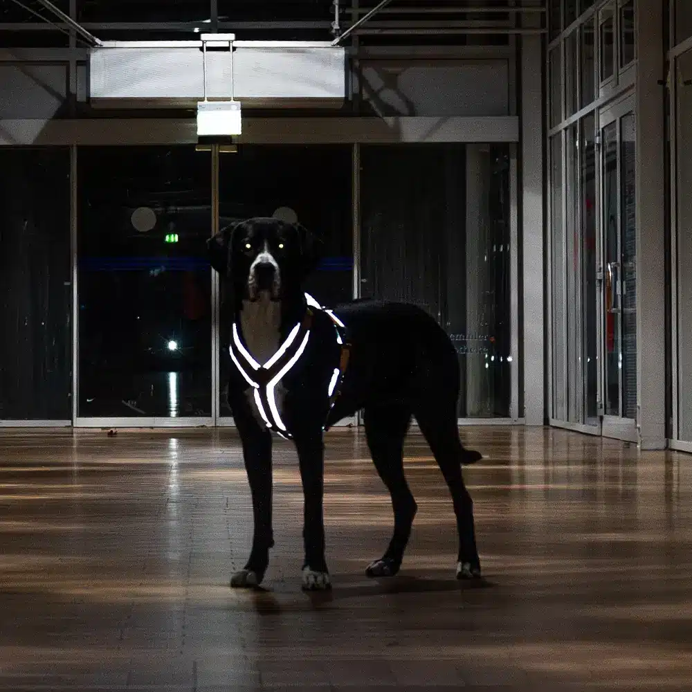 Das besondere Reflex-Softshell sorgt dafür, dass einfallendes Licht besonders intensiv zurückgeworfen wird. Autoscheinwerfer, Straßenlaternen oder Fahrradlampen machen deinen Hund sofort sichtbar und lassen ihn zuverlässig auffallen. So seid ihr auch bei Dämmerung und Dunkelheit bestens geschützt.